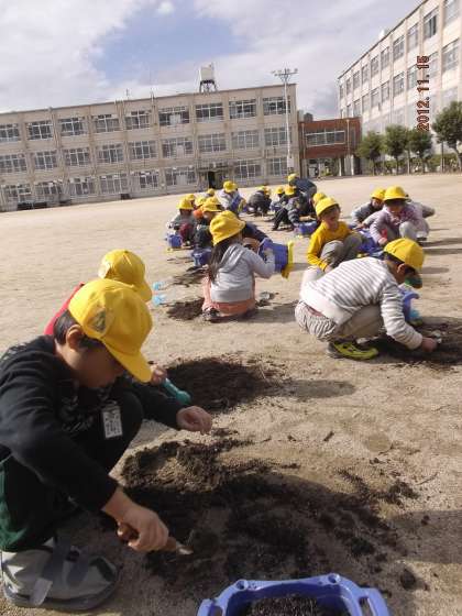 肥料をまいて,水やりをして・・・花が咲くのはいつごろかな?