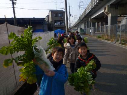 地域の畑に植えてある大根を収穫しました。