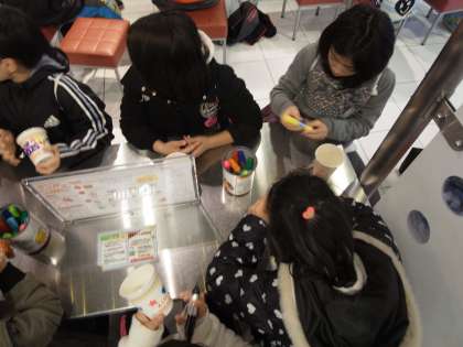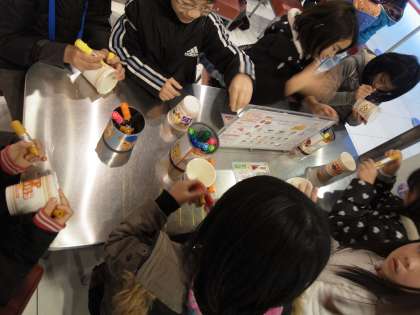 カップに絵を描き,オリジナルのインスタントラーメンを作りました。
