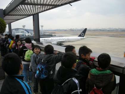飛行機の離着陸に歓声が上がっていました。