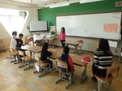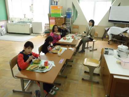 朝のスピーチでは,マイクをもって発表します。みんなからたくさん質問も出ました。今年初めての給食は,スパゲティでした。とてもおいしくいただきました。