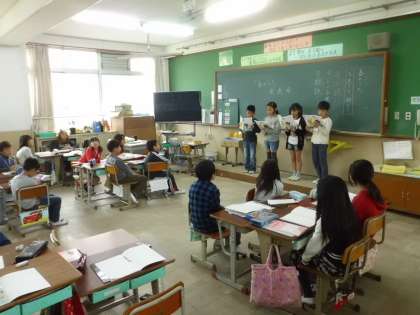 クラスで発表会をしました。グループで役割などを決めて,工夫して群読しました。練習の成果もしっかり出て,うまく発表できました。
