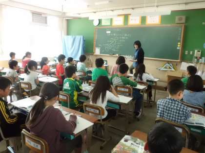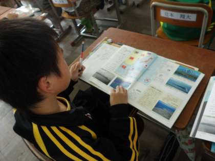 社会科で日本地図の学習をしていました。これから日本の各地の産業について学習していきます。米作りのさかんな○○地方は・・・水揚げ量の多い○○港は・・・そういえば私たちの住んでいる京都は日本のほぼ真ん中にありますね。