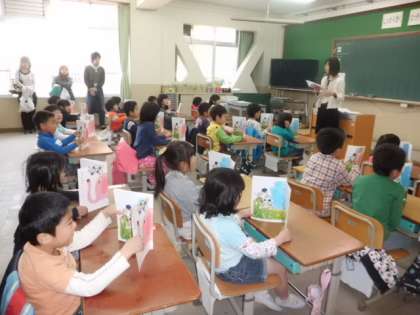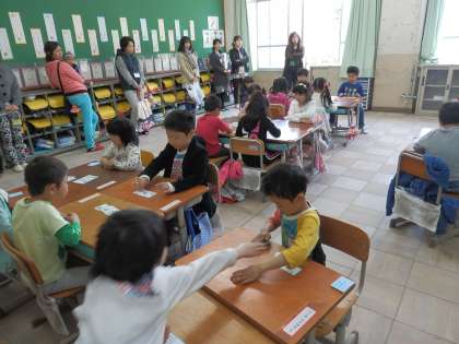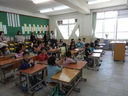 今日ははじめての授業参観日がありました。たくさんの保護者の方にご参観いただき,子ども達はやる気いっぱいでした。大きな声で音読をしたり,自己紹介をしたり,めあてにむかってがんばって学習することができました。