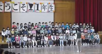 今日は,児童会主催の1年生をむかえる会がありました。6年生と手をつないで入場し,全校で歌を歌いました。とても楽しい時間を過ごし,1年生みんなニコニコ笑顔でした。