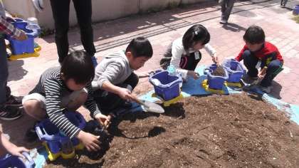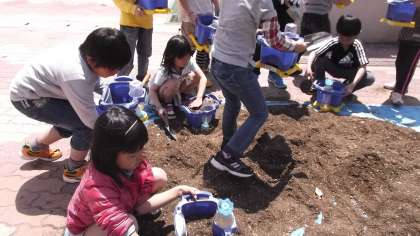 土をいったん出して,混ざった根っこを取り除いて・・・ふわふわの土になりました。