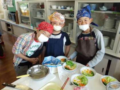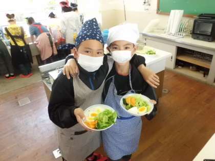 5年生になって初めての調理実習です。グループで協力し役割分担もバッチリでした。もちろん味も???