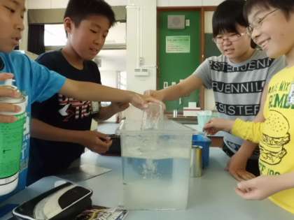 酸素や二酸化炭素の中で,ろうそくを燃やすとどうなるのかについて実験しました。