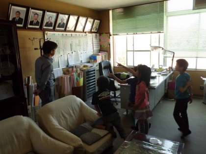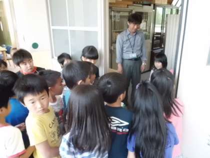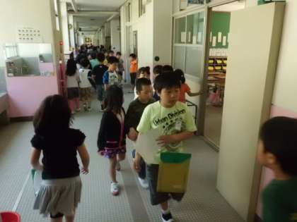今日の3・4校時に1・2年生で学校探検をしました。2年生のお兄さん,お姉さんに学校を案内してもらい,いろいろ教えてもらいました。まだ低学年では使わない教室も入ってみました。2年生が1年生にとてもやさしく教えてくれました。校長室には大行列ができ,校長室の中も見せてもらいました。