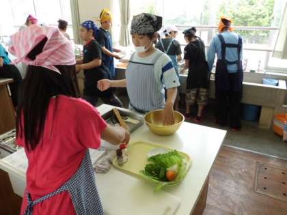 調理実習で野菜炒めをしました。