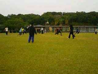 食後の自由時間 芝生で鬼ごっこ…