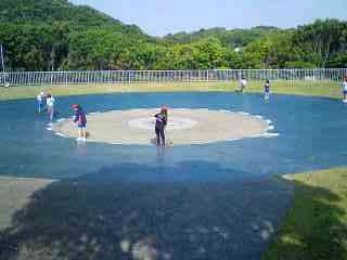 昨夜楽しい思い出を作ったキャンプファイヤー場もきれいに掃除します。