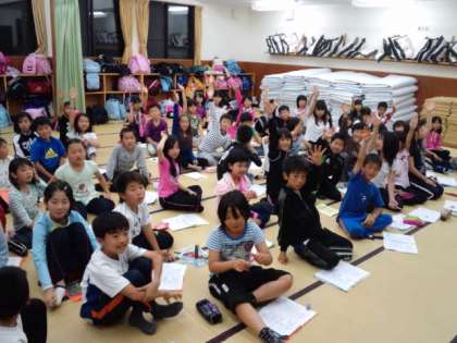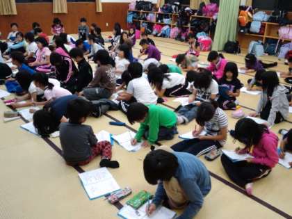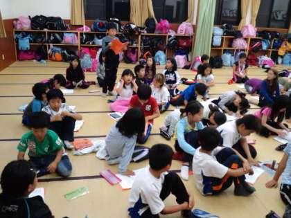 磯観察や選択活動、ナイトハイクなどの楽しかった活動について発表しています。