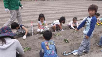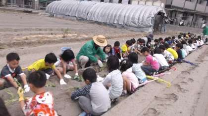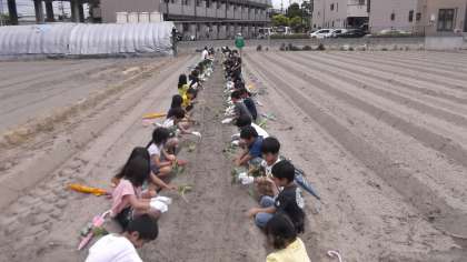 地域の方のご厚意で畑をお借りし,サツマイモの苗を植えさせて頂きました。