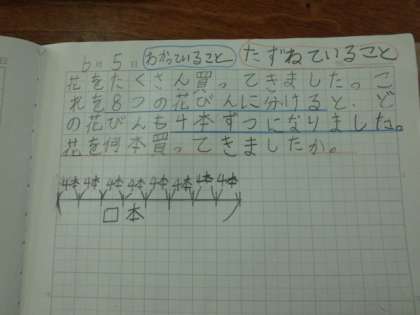 線分図を使って考えることができるようになってきました。説明もじょうずです。ノートにもわかりやすく書けていますね。