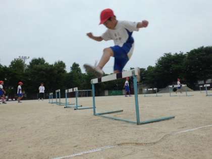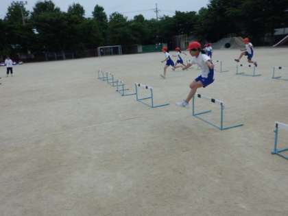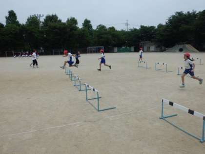しっかりとスピードに乗って,ハードルを越えていきます。インターバルのリズムもとても大事です。これからがんばって練習していきましょう。