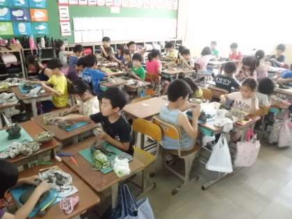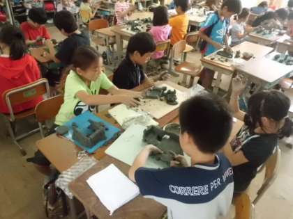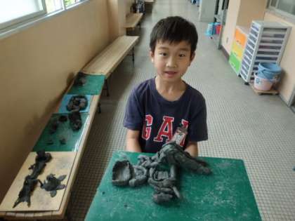 ねんどの切り方やけずり方を工夫して,そうぞうした世界をつくりました。みんな楽しいひみつの遊び場を作りました。遊びが大好きな子どもたちは,楽しい作品をたくさん作っていました