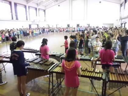 今日のいきいき発表会の前に,今年度初めての演奏をしました。緊張しましたが練習の成果をしっかり発揮できました。メロディー委員会の演奏に乗って,全校児童も児童会のうたを元気よく歌いました。