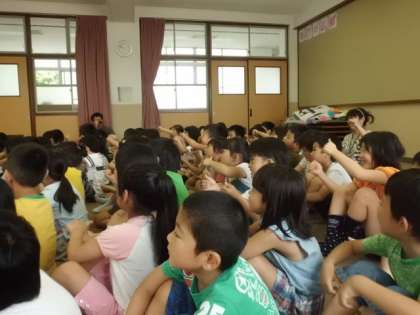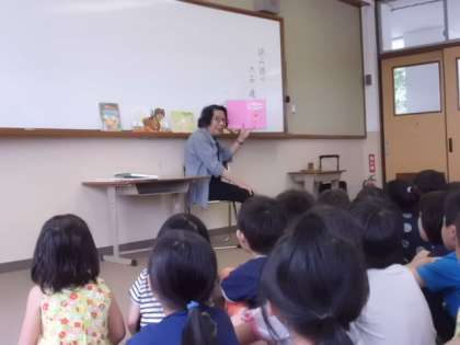おおいしすすむ先生の読み語りはとても楽しかったです。身ぶり手ぶりを入れながらの聞き方を教えてもらい,子どもたちは大喜びでした。