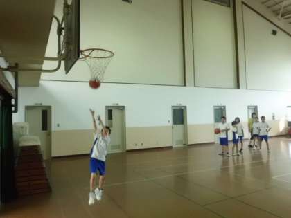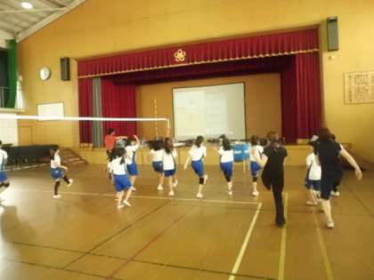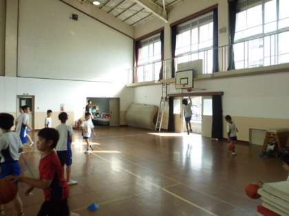 体育館内とはいえ,たいへん暑い中で,バスケットボール部とバレー部ががんばっていました。シュートをカッコ良く決めるバスケ部・基礎となるリズム感を鍛えるべくダンスをしているバレー部・・・輝いていました。