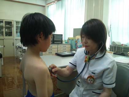 14日に学校医の山内先生に内科検診を行っていただきました。内科では姿勢についても診ていただきます。