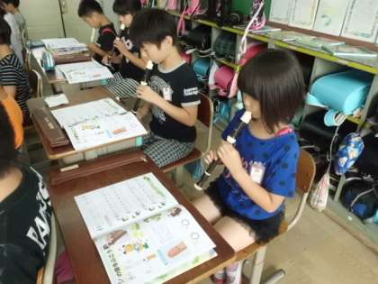 3年生から始まったリコーダーの学習です。シとラの音だけできれいな曲を演奏していました。これから,どんどんふける音を増やして演奏できる曲も増えていくといいですね。