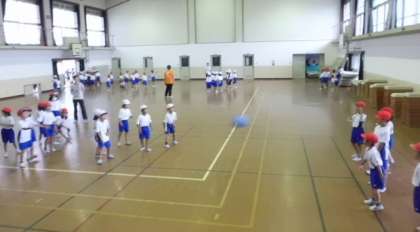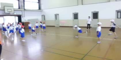 体育館でドッジボールをしました。ボールをけんめいに追いかけ,相手チームめがけて全力で投げていました。体育館は熱気ムンムンでした。