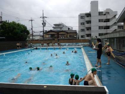 6年の水泳学習が始まりました。ねらい1では,できる泳法で距離に挑戦します。突然雨足が強くなり・・・残念ながらプールをあがることになりました。これからがんばっていきます。