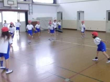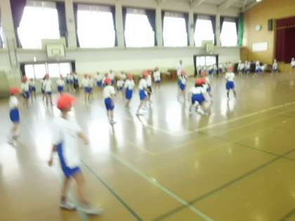 ドッジビーの試合をしました。あたっても痛くないので,どんどん向かっていこうとしますが・・・とるのはかなり難しいようです。投げ方にもコツがいりますが,スピード・コントロールともにかなりレベルの高い児童もいます。