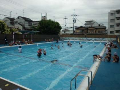 体育「みずあそび」では,顔をつけたり,浮かんだり,泳いだりして楽しく活動しました。