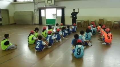 体育館で5年生がバスケットボールをしていました。みんな勝利をめざして全力でプレーしていました。