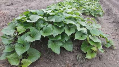 地域の畑をお借りして育てさせてもらっている,サツマイモを見に行ってきました。