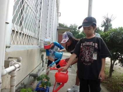 夏野菜の「オクラ」を育てています。暑い日が続いていますので枯れないようにしっかり水やりをしています。