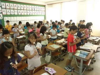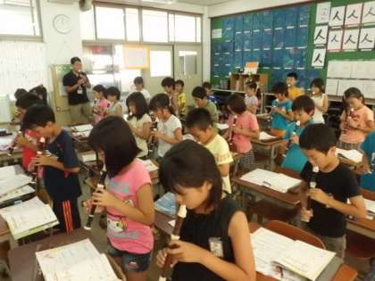 イチローさんのまきばで・・・・・・♪歌とリコーダーを組み合わせてさわやかに演奏していました。夏の暑さも吹き飛ばす爽快感がただよっていました。