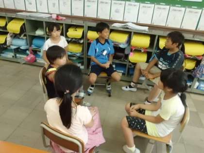 今年度から始まった「にこにこタイムズ」・・・1年生から6年生までのたてわりグループでのあそびです。今日は1回目の集まりで自己紹介と今後のあそびの計画を立てました。6年生がしっかりとリーダーシップをとってがんばっていました。6年生,これからもよろしくお願いしますね。