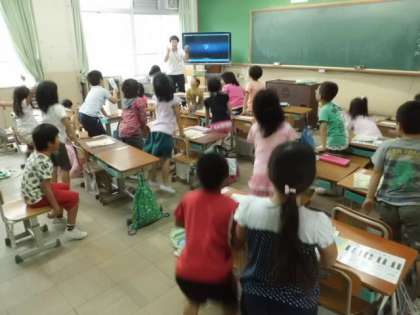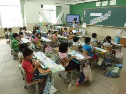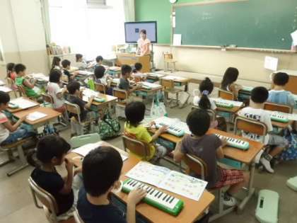 1年生は音楽が大好きです。けんばんハーモニカを演奏したり,歌ったり,体で表現したり・・・リズムにのって楽しく活動すると心も体もスッキリしますね。