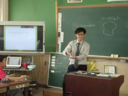今日から新しい英語の先生,ルー・アレクサンダー先生に教えてもらっています。先生はカナダ出身で,今日は自己紹介も含めてカナダの様子をいろいろと教えて下さいました。これからもよろしくお願いします。