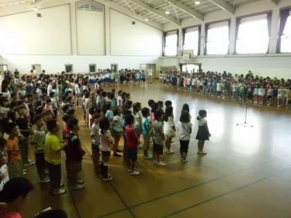 今日のいきいき発表会の前段でメロディ委員会に演奏をしてもらい,みんなで児童会の歌を歌いました。とてもじょうずな演奏に乗って,みんなものびのびと気持ちよく歌を歌うことができました。