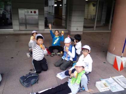 がんばってゴールしました!少し休憩しています