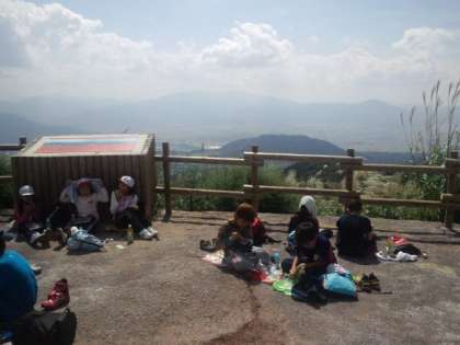 山頂から下りてきて大野市が見わたせる展望台で、昼食です。