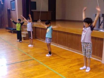今日は、ラジオ体操〜大阪弁バージョン〜で笑いを交えて体を目覚めさせました。