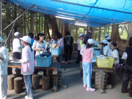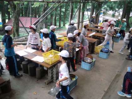 職員の方の説明をしっかり聞き、野外炊事が始まりました。