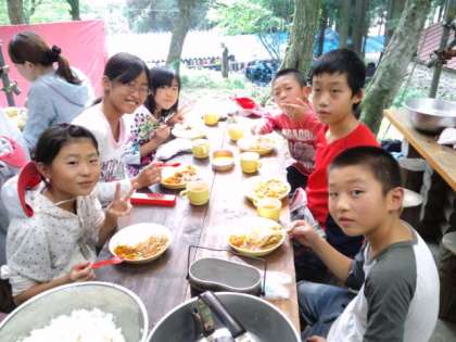 長期宿泊学習 〜野外炊事9・できた→食べる〜