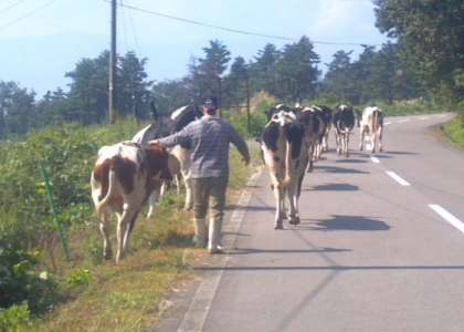 通りかかった牧場の牛たちも応援してくれています。