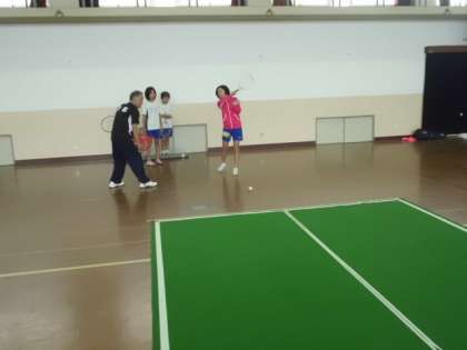 ラリーの練習や,ネット際のプレーの練習をしました。そろそろ試合形式でできそうな感じです。来月もがんばって下さいね。