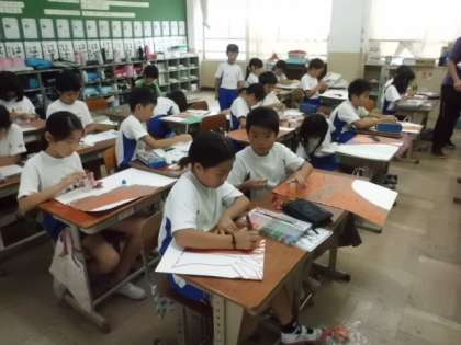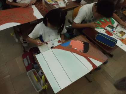 ちぎり絵の手法を生かしながら,とてもていねいに作品作りをしていました。