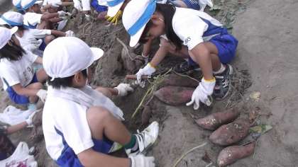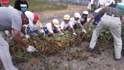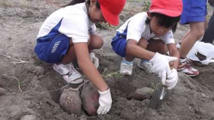 ドキドキ,ワクワクしながらスコップを入れ,優しく土を取り除いていくと・・・だんだんと姿を現すおいもたち。