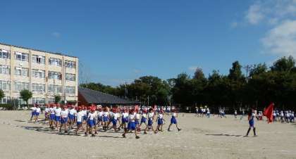 本日晴天の下,全校練習を行いました。子どもたちはとても真剣に取り組み,立派な態度で参加していました。