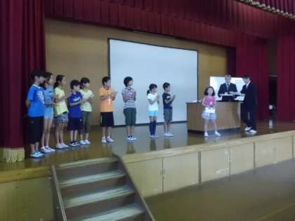 終業式に先立って,図工の作品や陸上の大会で賞に入った児童の表彰式がありました。みんなから大きな拍手をもらってとてもうれしそうでした。