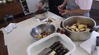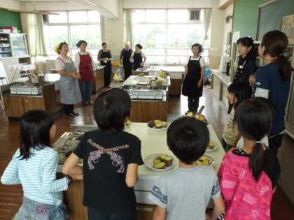 先日,収穫したばかりのさつまいもをゆでて,おいもパーティーをしました。調理には,地域の女性会の方々にご協力いただきました。